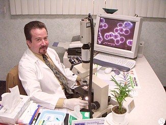 Tue 23 Dec : I had some good sleep. Broken by my needs for toilet. The new diet regime is working. I get very loose bowl movements and very often. I don't pass to much at one time. This morning my anus wasn't as sore as in the past days. A constant pulsing sensation/discomfort is now always with me (the bloody colon tumor is taking too much room). I was up at 7:00am. This week I am on the liver cleanser program as well as IBC program. Dr. Henriques came to check on me. We definitively like his manners with patients. Even with my liver tumors still growing my liver functionality tests are still normal with the exception of LD and GGT that the doctor says shows infection activity. The CEA is not ready yet to show us what happened with the cancer cells in one week. New to me is the Hyperbaric Chamber. My entire body is enclosed in a confined space and pressure is applied. Just like when you do snorkeling in the sea or take a plane. This technique increases oxygenation of the blood. After this is xrays of my chest and abdomen. My schedule is very busy today. I had to see another doctor (Dr. Salvador Chavarin M.D., see photo) for a live blood test (HLB). He takes a couple of drops of blood from the tip of my little finger and spreads the blood onto a microscope glass. He showed my blood cells on a large computer screen... and started talking about the lack of enzymes and vitamins... too much for me at once. I leave his office with two color printouts of my blood. I have to wait for Dr. Henriques to make some light on all of this. Eileen went to Henry's supermarket to shop for our Xmas lunch. She purchased PANETTONE... I can have one slice for dessert on Xmas day :-)