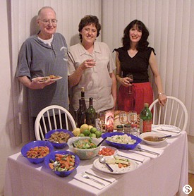 Thu 25 Dec : MERRY CHRISTMAS - BUON NATALE - Best wishes to all. Everyone is celebrating today and we send our warm thoughts to you all wherever you are. Eileen is all pumped up for the day. Make up and all. She looks beautiful... but that is not difficult at all for her. We made a few calls to the one's we could reach. The difference in time with Europe is even greater then P.A. Tomorrow I will be sedated and out of commission all day for the Whole-Body Hyperthermia. We managed a Xmas supper with other patients (see photo). The hospital has accommodation for relatives next to the hospital and there Shirley and Eileen prepared a proper Xmas dinner. Organic free range Turkey, Vegy only stuffing, steamed Vegy, mixed Green Salad, Potatoes, Wine and Panettone for dessert. Don't worry I only had steamed vegy and potatoes followed by a slice of Panettone. Eileen had a couple of glasses of Red Wine. She really needed a reward.