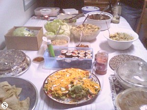 Sat 20 Mar : Last night we went for a nice potluck supper at Lynne Harley's place. It was a nice get together with a lot of people, some of which, we had not seen for a while. The occasion ??? Roy will soon be 50 and he is off for a couple of months discovering China. We all have different ways to deal with the 50s crises ;-) Then there was Brenda that is trying to catch up with Roy... with her 36th birthday coming soon, and she will be moving to the Cayman Islands. And it was also a Bridal Shower for Judy Drebit that is soon to be married.