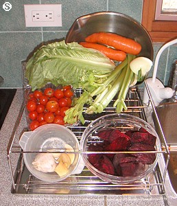Wed 22 Oct: I am publishing online more of my medical records because I want to know more of what is going on as well as having all my data available for consultation. 2 more reports are online: Endoscopy Report - 8 Oct, 2003 and CT Scan Report - 8 Oct, 2003. Well you know me... I enjoy taking pics, so I will show you the equipment of my new life: Choosing a Juicer. I still have my up an downs with the lack of solid food as well as the freedom to access food in general. I have checked and I have the OK to indulge with chewing raw garlic... well above the 12 cloves... up to 50 a day. I am absolutely in theme with the seasonal Halloween. If you meet me these days be advised that you will know if I am around before you see me. Today I have started the SECOND week of the program. My schedule is even busier... we will see how it goes by the end of the day. The morning run was good and needed. My morning weight is 72 kg. After the bath is 73 kg. Tue 21 Oct: I was so tired last night. I missed my afternoon nap and I do realize that I can't afford that. I need a lot of rest. I will try not to do it again. It was quite a day with a lot of new info about alternative therapies. I went to the board meeting of the PA Canadian Mental Health and after our business I had to share my news. I have already been away several months this year to get Eileen affairs in order in England... and now I have another excuse to limit my time. I am not much of a president... At the meeting they were eating Chinese food... one of my favorites. The draft of the second week program, to start tomorrow, is online and waiting for Doc Ian approval (SECOND week intestinal cleanse). You know that your life has changed when you get happiness from a bowl movement ;-) This morning weight is 72 kg. The evening weight after the bath is 72 1/2 kg. Mon 20 Oct: Another week is starting. My cravings for solid food are getting better. Having Eileen also joining the program has helped me a lot. I just could not do this program without her. I skipped my hot bath last night. We were both too tired and felt more important to get sleep. Today Eileen got active and called Dr. Castillo (www.drcastillo.com) in Tijuana, Mexico. In just a week we have had several connection leading to him. After my 4 week total body cleanse (FIRST and SECOND week intestinal cleanse, THIRD week liver and gallbladder detox, FORTH week Kidney and bladder cleanse) we are considering to go We just finished a phone call to Claude Marlow that works as an info agent for Dr. Castillo out of Tucson, USA. We had a lot of interesting info as well as an incredible courtesy. My morning weight is 72 1/2 kg. Sun 19 Oct: I am sipping my Cayenne broth (Blood D-tox and Liver/Gallbladder tea). I like to call it this way because that is what it reminds me of. Doc Ian is gone very generous on the Cayenne pepper. This morning we tested the citrus juices purchased at Sears with oranges and grapefruits. We do the pineapple with the borrowed Champion juicer. How much we learned in just over a week about juicing. I had an emergency run to the toilet in the middle of the night and another one at 5:00am. Usually my body is used to wait for my morning glasses of water to let the bowl movement work... not this time. I had a quiet evening/night. Very loving with Eileen. She works so hard for me and is encouraging me to fight back and beat this. Yesterday we chased around Prince Albert for organic produce. At times it is very discouraging. The only one that has some selection is the Superstore but they don't always carry the same items. Safeway has a very little corner. The Co-op downtown has only a few vegetables and not on a regular bases. I did some yard work and had a long afternoon sleep. Sat 18 Oct: I have increased the Intestinal Cleanse #1 and more gas and cramps have showed up in the evening/night. This morning I could not seat on the toilet soon enough. I think I will stay for another day on 3 pills. A little mishap this morning... a gallon of distilled water was all over the place. The jar collecting the distilled water was not in his place properly. It takes 5 hours to produce 3 liters of water. I have to use distilled water for drinking and for preparing my teas. I have made one more step ahead in better understanding the process of all the pills and potions I am taking by preparing a glossary of the first week program. One more black cloud this morning... missing my Saturday eggs on toast, really got me. My second bowl movement just after lunch is very liquid. My morning weight is 72 1/2 kg. Isn't this a great diet ??? Look at my weight !!! I am not even trying to lose weight but just to kill a bloody cancer. My weight after the evening bath is 73 1/2 kg. Are the vegy starting to stick on me ??? Fri 17 Oct: another day... I had a good sleep, nice and deep. I really needed that. My mind wondered things this morning as I was awake in bed and enjoying Eileen's warmth. She snores at times and that is music to my ears and also a reminder that she is there... I am in the middle of a serious battle. My days are quite full with the program... shopping for organic produce, equipment, preparation, etc. I am also doing my best with work but I am slower than I would like. Only now I realize that my energy level was down. I had accused the many things I had to do. The truth is that the cancer is getting a lot out of me. Having made this realization helps me accept the present. I need a lot of rest. I am trying to have a long nap every afternoon. I can tell that my moods are very much connected to how tired I feel. Tiredness sneaks on me and by the time I realize it... is too late and I find myself down. Today I have all the ingredients of the program ready and will be 100%. I still have so much documentation about the program to read and understand... I will do this a little bit at the time. Eileen is right now preparing my cup of Blood D-tox and Liver/Gallbladder tea. This tea contains a gener