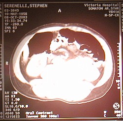 Thur 9 Oct: meeting with surgeon Dr. Randy Friesen to discuss CT scan results and possible operation. He offer to operate as soon as the following Tuesday on the Colon cancer and do a biopsy of the liver. We agreed and get going on the required documentation. I have a turkey soup for lunch... it repeats on me all afternoon. I have a visit with my family doctor (Rod Unsworth) for my preop exams (chest xrays and ECG test). The doctor compare the chest xrays with the previous one... no change is noticed. At 3:00pm we called Ian Shillington (Naturopatic Doctor) and he proposes an alternative attack on the cancer. Immediately he takes me off all solid foods and put me on a strict organic fruit and vegy juices regime. For dinner I have my first vegy juice... and my body really likes it. We use a little Braun juicer that we borrow from my neighbour Addline. My weight at the end of the day is 79kg. Wed 8 Oct: colonoscopy & CT scan... the news is that I have a return of my Colon cancer in a lower position of the descendent colon. About an inch in size. In the afternoon the CT scan shows small dots on the liver (4 spots). I was diagnosed with Colon cancer in December 2000... I entered the emergency ward with a severe blockage and pain. I was opened in my abdomen and the cancer was discovered and 10% of my Colon was removed. Since I made a good and fast recovery until this year when my CEA (carcinoma embronic antigen) blood test showed cancer cell activity.