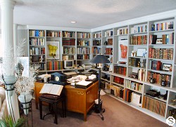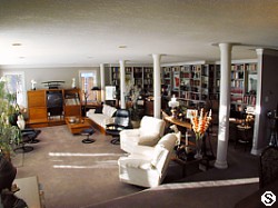- Large great room with wood burning fireplace and open library/den.