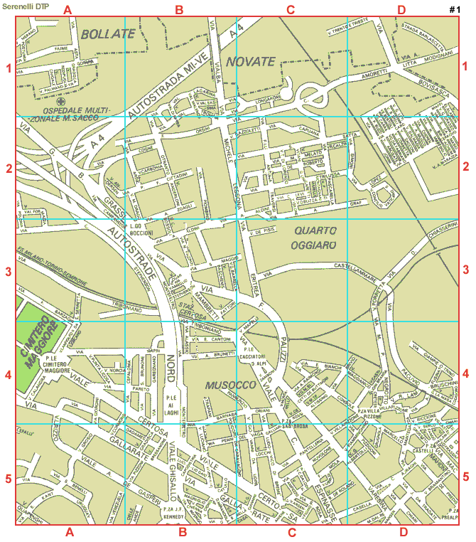 - Certosa, viale - Tables: 1 - A4-B4-B5-C5 - 9 - D2-D3 - 12 - B1-C1-D1-D2 - 13 - A2