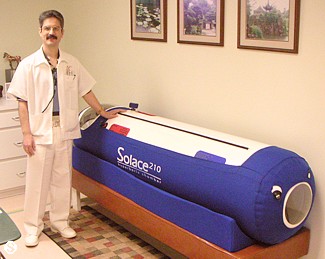 Tue 23 Dec : I had some good sleep. Broken by my needs for toilet. The new diet regime is working. I get very loose bowl movements and very often. I don't pass to much at one time. This morning my anus wasn't as sore as in the past days. A constant pulsing sensation/discomfort is now always with me (the bloody colon tumor is taking too much room). I was up at 7:00am. This week I am on the liver cleanser program as well as IBC program. Dr. Henriques came to check on me. We definitively like his manners with patients. Even with my liver tumors still growing my liver functionality tests are still normal with the exception of LD and GGT that the doctor says shows infection activity. The CEA is not ready yet to show us what happened with the cancer cells in one week. New to me is the Hyperbaric Chamber. My entire body is enclosed in a confined space and pressure is applied. Just like when you do snorkeling in the sea or take a plane. This technique increases oxygenation of the blood. After this is xrays of my chest and abdomen. My schedule is very busy today. I had to see another doctor (Dr. Salvador Chavarin M.D., see photo) for a live blood test (HLB). He takes a couple of drops of blood from the tip of my little finger and spreads the blood onto a microscope glass. He showed my blood cells on a large computer screen... and started talking about the lack of enzymes and vitamins... too much for me at once. I leave his office with two color printouts of my blood. I have to wait for Dr. Henriques to make some light on all of this. Eileen went to Henry's supermarket to shop for our Xmas lunch. She purchased PANETTONE... I can have one slice for dessert on Xmas day :-)