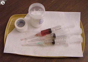 Mon 29 Dec : A good night sleep for both of us... in fact we were waken up by the nurse with breakfast... it is some sort of hotel life. The kind of "take it easy" we needed. And at the same time, get well !!! Not just me. Eileen looks better and better. We did not see Dr. Henriquez today. He was too busy with new patients and Whole-Body Hyperthermia... but he responds very well to our emails. I prepared more documentation online on another treatment I am under, the IBC Dendritic Cell Vaccine. When I was admitted in this hospital plenty of blood was taken from me (see photo). Over a dozen of vials of blood to create a vaccine from my blood to fight the cancer cells. Please read the article clicking here to understand a little more. I had my third session of Hyperbaric Chamber to oxygenate my blood. I get every day plenty of intravenous fluids. A full litre in one bag and several small ones. They are pumping me up for next Friday second Whole-Body Hyperthermia. After breakfast we had again a walk around the block before I got hooked back to my intravenous. We will try to keep this up as it makes us feel very well. I start Week 12 (IBC Hospital Therapy & Kidney Cleanse - 29 Dec-3 Jan, 2004).