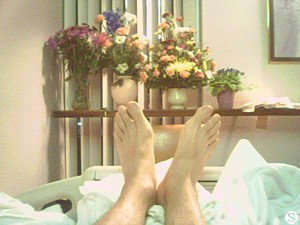 Thu 18 Mar : A quiet day in the house. I am in the middle of getting ready for Milan. The software fase. I have made computer setups all day. My evening weight is 67 kg. Wed 17 Mar : Back on the treadmill and feeling a little stronger too. I did not push... although I was tempted. I have to be good for a week or so. For now the Stoma Bag did not feel that bad. But then again I am running very slow. I will wait to make comments on it. This is the next day to the news. I still feel the same way as yesterday. Serene and active toward our next trip. I have plenty of remote work to do in Milan before we leave and then we are off. Today I also have to see the accountant. I have all ready and need him to finish up everything before the end of month. My morning weight is 66.5 kg. Tue 16 Mar : I did not run/walk this morning. I got busy with work early in the morning and I was waiting for a call from Dr. Randy Friesen. Around midday we got the call that he had a pause in his operating day and could see us to discuss the results of the latest CT Scan (the scan written report will be ready in a few days). We drove to the Victoria Hospital and met with him right away. We went strait to see the scan films and he started explaining the findings on the images. The colon tumor is substantially unchanged since the November scan. Then was the liver turn... more new findings. The last scan showed 6 tumors. This one showed 16. Some of the lungs were also scanned as a reference for the abdomen scan... and 2 small spots were visible on the lungs. This cancer just doesn't want to hear a stop. We have done so much over the last 5 months but still the cancer is proceeding on his path. I was very calm in hearing the news. I felt a new sense of serenity and tranquillity. Nothing could move me or shake me. I felt very much myself. My first words as reaction were more a statement of my feelings... "I am very happy with my life. A life well lived. Full of good times and bad times but still on balance a very happy one." My concern now is Eileen that is, at the moment, in a very delicate state. I can only balance her anxiety with my serenity. And I feel I have recuperated terrain in wanting to be happy and serene again. My desire is for us to have good time. We left the hospital to go and see Tom at CAA and get ready to book a flight... for the end of the month to Milan, Italy. It is time to get things in order and do things we wanted to do. Milan is business and also a place of good friends. It will be base for a few weeks as I deal with business things alternated with some Italy discovery. Eileen has not yet been in Italy. It is time to do it. Well, we are in a new fase. It is time to enjoy life !!! Mon 15 Mar : After 3 weeks of walking on the treadmill I finally run this morning. What a great sensation. It was not planned. I just started moving in walking mode and my feet took over. It was a very slow run. Anyone could have passed me walking. But it was a run. My first one since the operation (this time only 3 weeks away, in 2000 I needed 4 week). Nothing has the effect of running on my body. My entire body vibrates... right to my finger tips. I feel a great sense of relaxation and happiness. They say it is endorphins effect... I don't care what it is. It is something that has made roots into me. We went to see Phyllis Stephens (the Stoma Nurse) for another change of the Stoma Base. The stoma has reduced again and I was able to fit the 56 mm. (last week was 70 mm. and the week before 100 mm.). The appearance of the stoma is healthy. I can feel the difference of the smaller base. I can bend without problems... and I can wear my pants and underwear much better. The bag is still of the same size and with the filter to release gas. I am getting to know my bag everyday a little better. I can't say I like it... I would not go that far... but I can move more comfortably with it. Sun 14 Mar : I have my full breakfast (fruit, cereal and toast). I keep working on my network issues. I got some good days of full mental involvement into learning new things. Another lazy weekend. I did not do anymore than my treadmill walk in the morning. I had the largest bowl movement this morning. I needed a rush change of bag to let more come. The bag is still dragging me down. I feel somewhat handicapped. Sat 13 Mar : In the typical way, after a down there is an up. I am doing a little better today. I got involved in studying some new network connection types... and feel really good about it. Dinner is Kamut whole grain Pasta with Basil sauce. We now have pasta one night a week in the menu !!! Fri 12 Mar : In the morning I am at the Victoria Hospital for the CT Scan. I managed to collect the film of the scan and tried to see Dr. Randy Friesen to get some comments. Unfortunately he was tied up in the surgery room for an emergency. We will have to wait until next week to get the report. Then I am off to the Community Clinic for the usual injections. The 8th Dendritic Cell Vaccine and Vitamin B17. I feel really down. The nurse takes 3 attempt to find my vein for the IV. I feel like I have enough with everything. Thu 11 Mar : This morning my weight is 65 kg... while last night before bed was 67 kg. There is this strange change of weight overnight of a couple of kilograms. I have recorded this now for a week and cannot really explain it. All the same I went into hospital at 63 kg. Yesterday I had a bag accident... I picked a defective one out of the box. I was wearing it and all the sudden I passed gas and had the impression that the gas made it out of the bag. I immediately checked and the seal against the skin was ok... but I saw the leakage in the material of the bag were it is welded to the plastic ring opening. Lets hope that this is an isolated accident. I need to carry a spare with me all the time. My travelling setup now on top of computer equipment has to include all the stoma appliance accessories. My morning appetite is incredible. I c