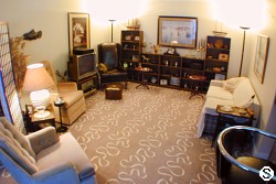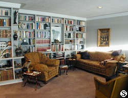 - Large great room with wood burning fireplace and open library/den.
