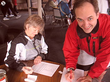Ina (first woman in the 12 mile race) is congratulating the various winners of the day.