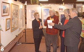 The Kyla Art Group was formed in 1979 by a collection of Prince Albert and district artists under the direction of the well known Saskatchewan artist Garry Thurber. They chose the name KYLA, meaning "of the forest", because is seamed to best describe the Prince Albert region which provided much of the subject matter for their work. The show is presented by the Kiwanis Club of Prince Albert. This is their first group photo after 24 years...